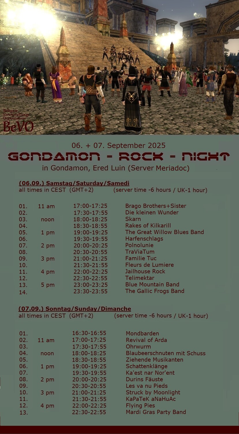 В эту субботу 06.09.2025 "Полнолуние" начинает новый музыкальный сезон традиционным выступлением на фестивале Gondamon Rock Night, который в этот раз впервые будет проходить на сервере Мериадок после его переезда с Белегаэра!